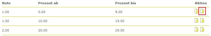 Möchten Sie eine erfasste Note bearbeiten, klicken Sie auf Höhe der gewünschten Note auf den Bearbeiten-Button.